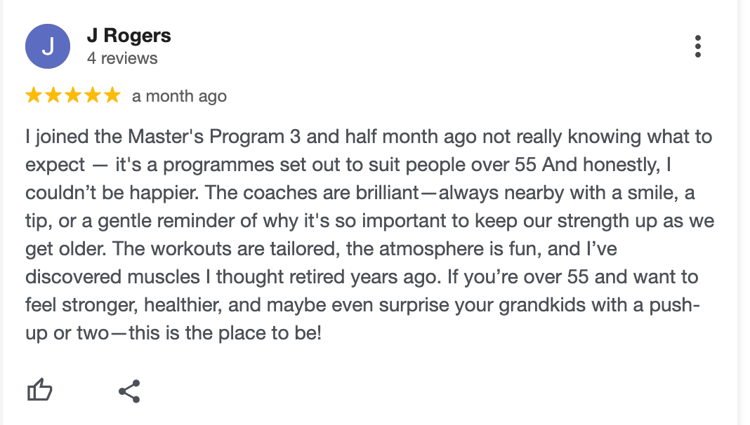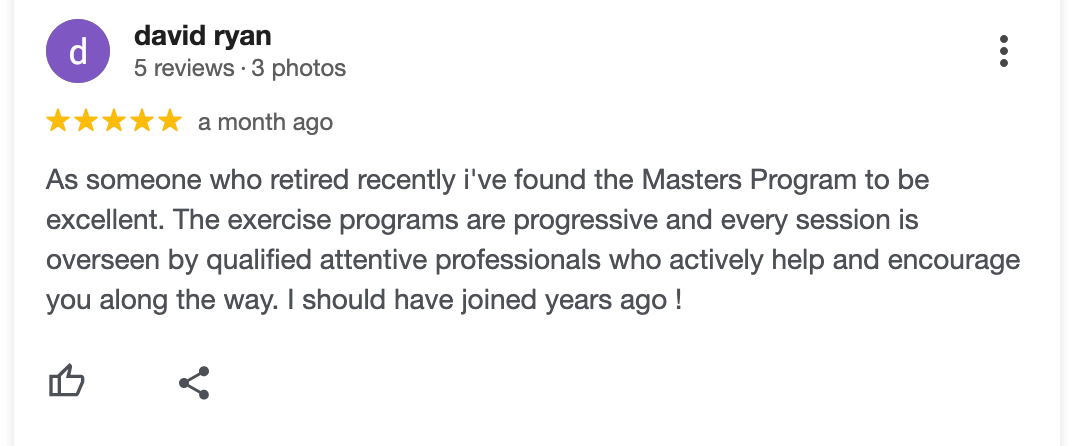 Take the first step towards better health and confidence. Book your Introductory Offer today and discover how the Masters Program can help you feel stronger and more active.