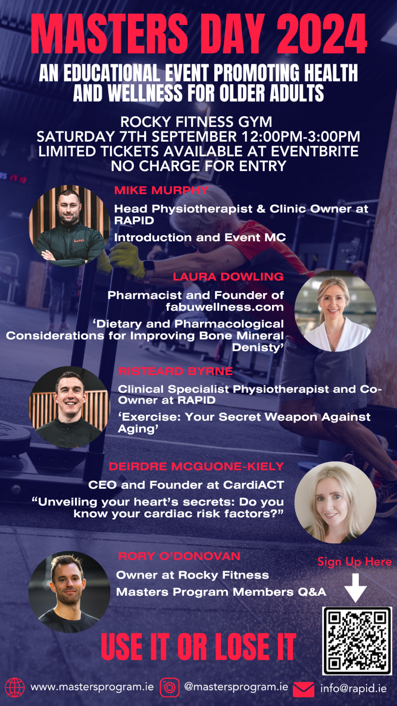 Each year, The Masters Program hosts Masters Day, a one-day event in Dublin dedicated to helping people over 55 build strength, improve mobility and enjoy a longer, healthier life.